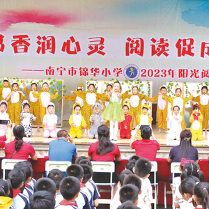 南宁市锦华小学开展读书节系列活动之“读书大秀场”。在展演中,一年级学生诵读古诗,拉开活动的序幕;二年级学生表演精彩的童话剧《老虎照镜子》;三年级学生演绎寓言故事《揠苗助长》;四年级学生在朗读中创设了多种情境;五年级学生将中国四大名著搬上了舞台;六年级学生带来情景剧《诗经·小雅·采薇》。最后,全体语文教师一起带来诗朗诵《一路书香 一路阳光》,勉励大家与书为友、与读为伴,畅游书海,为人生奠基,为精神打底。当天,师生还参观了各年级的阅读展台。