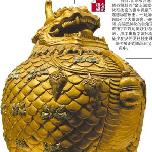 沈阳故宫博物院所藏清宫用品,除了极其奢华外,还蕴含着丰富的历史文化信息。“金玉满堂”展赴大连展出,共推出了68件(组)金器、玉器、珐琅器、漆器、玻璃器等。备受游客关注并引起好奇的是一对清代铜鎏金甪端,它们原本是宫廷用的香薰炉,其外形采用的独角瑞兽——甪端,则是从元代开始就受到统治者的重视。