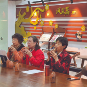 “我们正在筹备27日的演出曲目《绣红旗》。”张旭主动介绍:她们都是埙乐团的骨干成员,年龄以“50后”为主,在一起学习吹埙至少2年以上了。