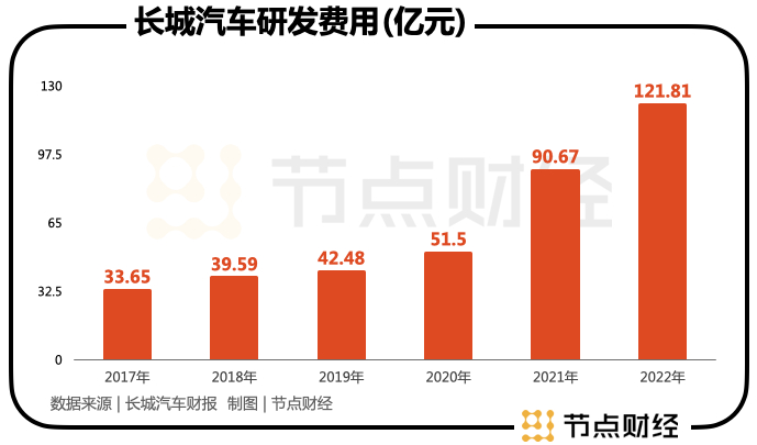 得益于长城汽车的持续性研发投入,与企业的全面战略转型,让长城汽车无疑更具先发优势。