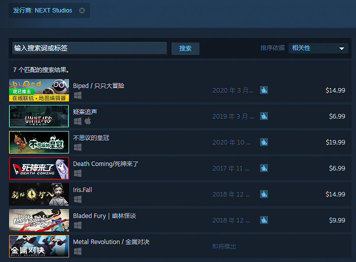 和在手游市场叱咤风云的头部巨鳄腾讯不同,旗下的NExT工作室在外人眼里显得略为低调和神秘。2017年至2019年间,NExT发售了《死神来了》《疑案追声》《彩虹坠入》等数款销量不错的精品独立游戏,从而也被不少玩家贴上了“小而美”的标签。有人认为腾讯是想尝试全新的业务领域,以做独游口碑来打开单机主机玩家市场。