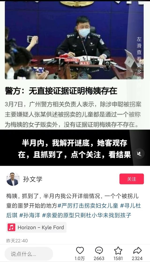 网传人贩梅姨被抓,警方回应:没有抓捕到,将继续追查此案件