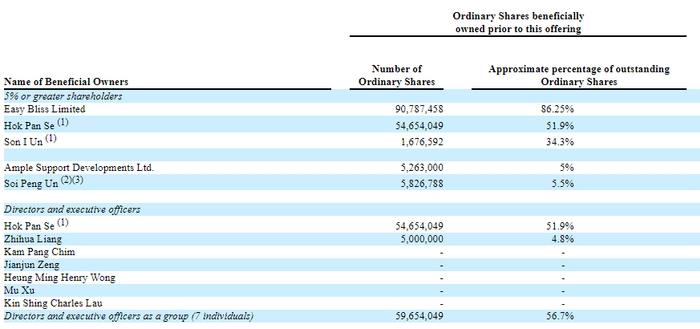Ms. Soi Peng Un(袁顺意的姐妹),通过Ample Support Developments持有5%的股权;