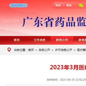 广东省药品监督管理局公布2023年3月医疗器械注册质量管理体系核查结果