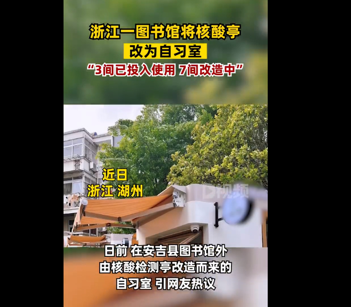 (原标题:浙江一图书馆将核酸亭改为自习室)