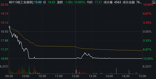 值得注意的是,3000多亿市值的工业富联再次“闪崩”,早盘开盘不久后便一路单边下挫至跌停,午后虽一度开板,但下午两点以后便再度封跌停板直至收盘。