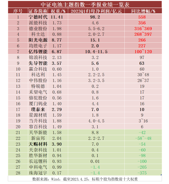 以中证电池主题指数成份股为例,动力电池+储能板块基本面情况一片火热。归母净利润的角度来看,第一大权重股宁德时代同比增长超5倍领跑,派能科技、德业股份同比增长超3倍紧随其后,前十大权重股阳光电源同比高增266%,科士达同比增长268%到397%,均胜电子同比大增227%。与此同时,中证电池指数最新市盈率(PE-TTM)仅24.30倍,估值分位数为0,即处于上市以来最低位。