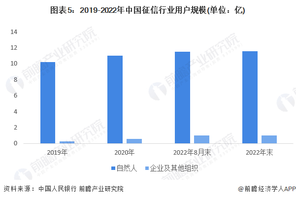 截至2022年8月末,中国征信行业收录11.5亿自然人信息,9874.6万户企业和其他组织信息,行业用户规模逐年壮大。截至2022年底,人民银行征信系统收录11.6亿自然人、收录1亿户企业和其他机构信息。