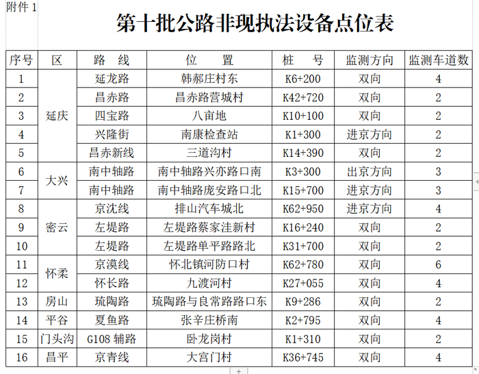 2023年5月15日起,我市第十批公路不停车称重检测设备启用,相关信息附后。