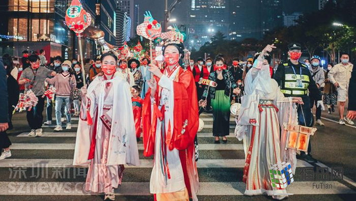深圳节日大道汉服秀。