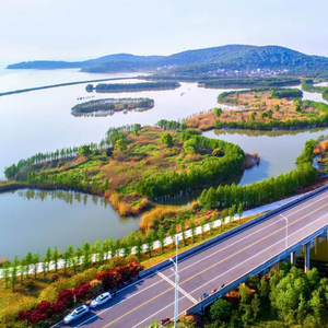 连接南京市溧水区和高淳区的跨湖通道,北起石臼湖北大堤,上跨石臼湖水道,南至石臼湖南大堤,全长12000多米。湖水如镜、唯美如画,被誉为新“天空之镜”打卡地。周边有傅家边生态园、南京天生桥、无想山、溧水博物馆等景点,可以吃农家乐、户外烧烤、烟火篝火、环湖骑行、体验农耕等。
