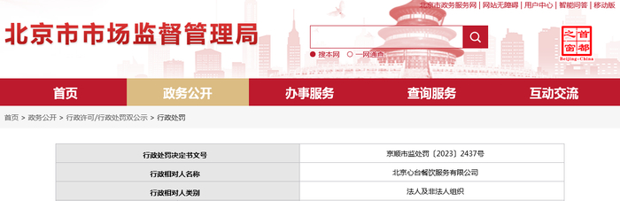 行政相对人名称 | 北京心台餐饮服务有限公司 | |