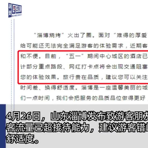 【#五一淄博人去哪旅游#:#淄博人五一出游近七成在省内#】4月26日,山东淄博发布致游客朋友的一封信,提醒淄博五一客流量已超接待能力,建议游客错峰出游,打出时间差、换得舒适度。#淄博喊话推荐其他山东城市#五一假期,全国各地人民都去淄博吃烧烤,那淄博人都去哪玩了?去哪儿数据显示,五一假期淄博人前往的热门目的地为:济南、青岛、北京、泰安、烟台、济宁、菏泽、潍坊、西安、天津。截至4月24日,携程数据显示,淄博人“五一”假期省内游订单占比为69%,淄博游客整体国内旅游订单量对比2019年同时间段增长107%,淄博人出游大都在山东省内。(财经网科技)