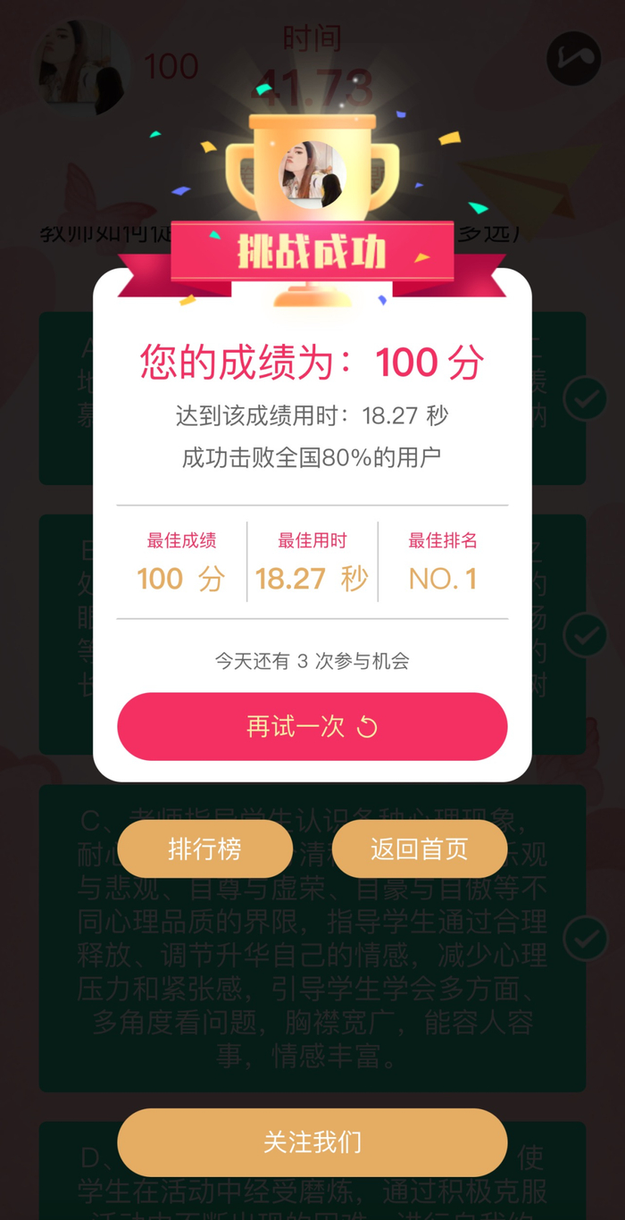 点击开始答题,共5选择题,答题总时长60秒。