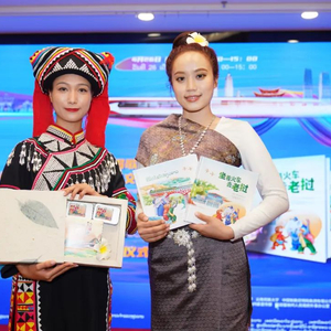 《坐着火车去老挝》(中老文)由云南教育出版社策划出版,以拟人动物为角色,讲述了中国游客小灵(滇金丝猴)、在中国昆明完成铁路专业培训的老挝籍学员阿康(老挝乌叶猴),以及乘务员象大叔(亚洲象)一起坐着火车去万象的友谊之旅。