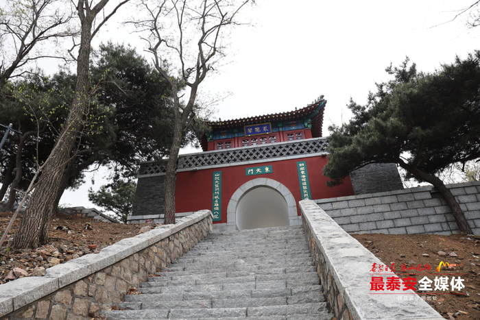 过了汉阙门便是东御道票务中心,至此便进入了检票区。一路前行,经过在植树造林石屋原址建起的御道石屋、借用汉武帝建设的甘泉宫命名的甘泉榭、代表开启天门之路的启天亭,便到达了阁楼式建筑东天门,过东天门可到达中天门,进入中路登天御道,继续沿着帝王的足迹攀登泰山。
