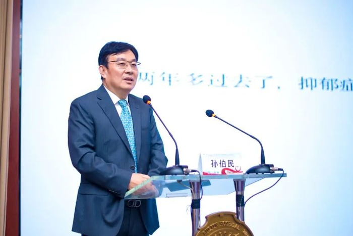 上海交通大学医学院附属瑞金医院宁光院长代表医院致辞。他说,全球有超过3.5亿人受到抑郁症困扰,虽然大部分患者可以通过抗抑郁药物、心理治疗等获得症状改善,但仍然有超过20%的患者传统治疗方法效果不佳,成为“难治性抑郁症”患者。