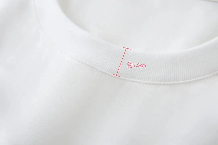 领口是微弹螺纹的设计,穿上很有复古感,而且不怕穿久了之后领口变形,更加耐穿~