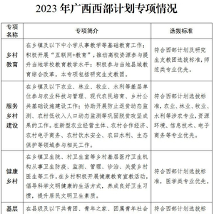 近日,根据西部计划全国项目办工作部署,2023年广西西部计划志愿者招募工作已正式启动。为选拔符合条件的普通高等学校2023年应届毕业生或在读研究生到广西基层工作,现将有关事项公告如下: