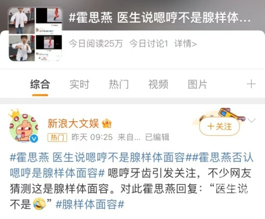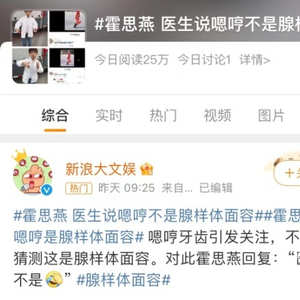 起因是艺人霍思燕在个人社交账号发布了一则儿子嗯哼的视频,被操心的网友提醒嗯哼可能有腺样体面容。