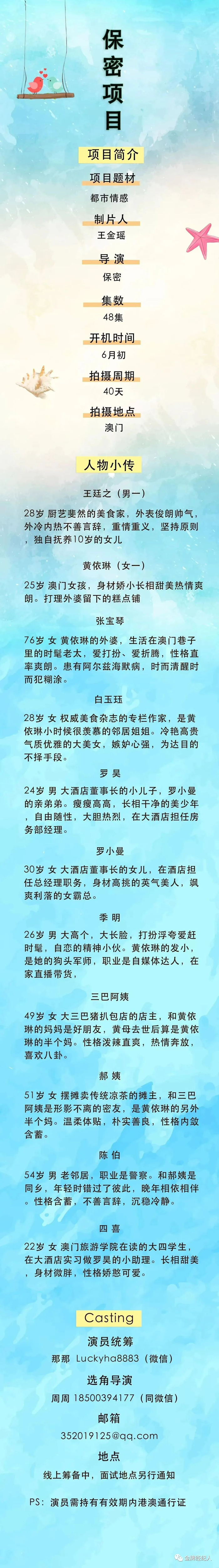 本栏目组讯由小编采集并供业内参考交流使用,信息内容如有变化请根据实际情况核实。各大剧组如有组讯发布,可以联系金牌经纪人,协助扩散!