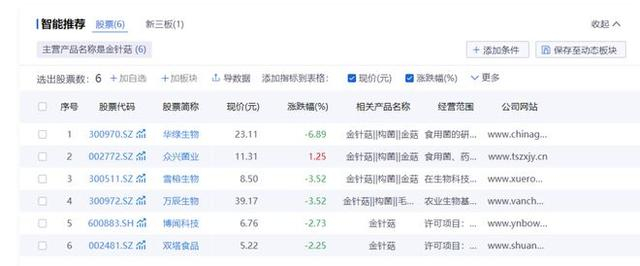 因为是烧烤中常见蔬菜,这波流量让A股甚至出现了金针菇概念股,一些涉及食用菌的繁殖繁育、采购销售及生产加工的上市企业受到关注。
