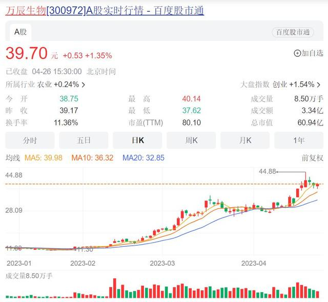 万辰生物、雪榕生物、众兴菌业、华绿生物自今年3月至今股价都有不同程度的上涨。其中,金针菇概念龙头股万辰生物自3月1日至今已累计上涨超过90%。