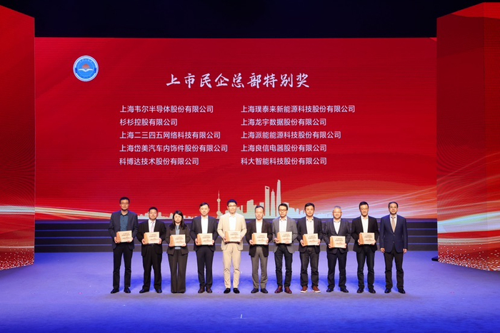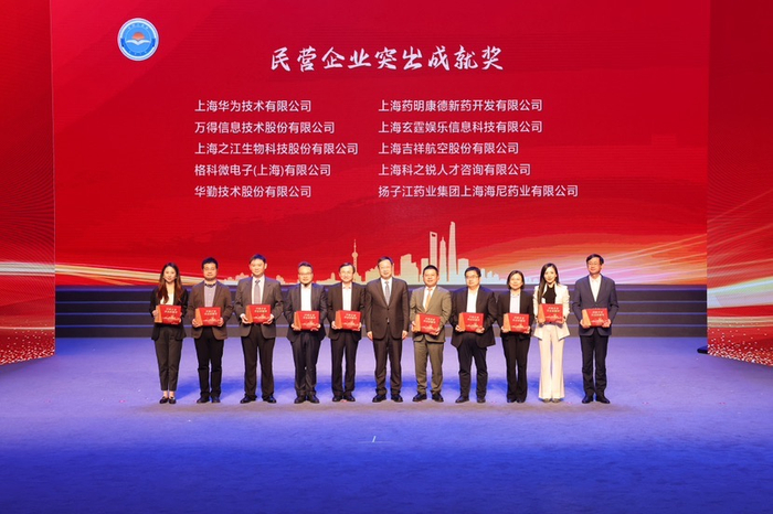 市委常委、浦东新区区委书记朱芝松向华为技术等10家民营企业颁发“民营企业突出成就奖”。市政府副秘书长、浦东新区区委副书记、区长杭迎伟向韦尔半导体等10家民营企业颁发“上市民企总部特别奖”。浦东新区人大常委会主任田春华,区政协主席姬兆亮向支付宝等10家民营企业颁发“民营企业经济贡献奖”。浦东新区区委副书记单少军,市工商联党组成员、副主席施登定向药明生物等10家民营企业颁发“民营企业创业创新奖”。