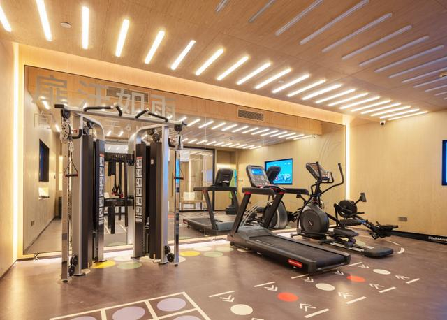不同于将健身器械集中放置于健身房内的传统思路,在扉缦酒店的扉跃客房,不仅放置了各类轻型健身器材,还配备了智能互动健身魔镜。