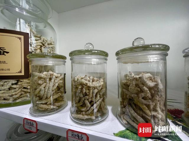 在僵蚕技术中心,展示着从蚁蚕到干僵蚕的全过程以及僵蚕入药的多种药品。据悉,僵蚕作为一种动物药,具有祛风止痛、熄风解痉、化痰散结的功效。其主要用于惊风抽搐、咽喉肿痛、颌下淋巴结炎、面神经麻痹等病症。其药用历史,最早文字记载可见于秦汉时期问世的《神农本草经》。
