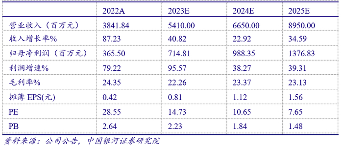 公司发布2022年年报和2023年一季报。2022年实现营业收入38.42亿元,同比增长87.23%;实现归母净利润3.65亿元(扣非3.56亿元),同比增长79.22%(扣非增长139.67%)。利润分配方案为每10 股派发现金红利0.85元(含税)。2023年第一季度实现营业收入12.98亿元,同比增长52.73%;实现归母净利润2.03亿元(扣非1.98亿元),同比增长53.86%(扣非增长48.22%)。