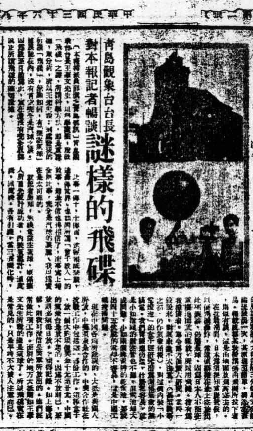 神秘莫测之“飞盘”,于前(20)日深夜2时许,也出现于本邑上空。