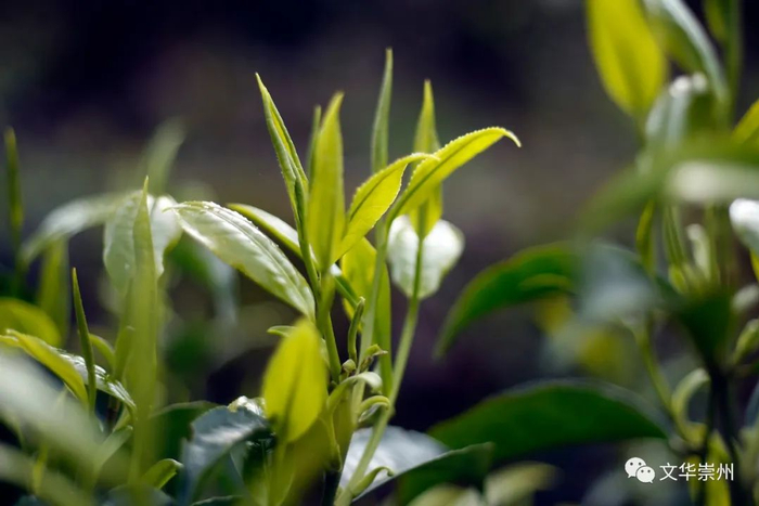 文井江畔的茶园里、茶树上