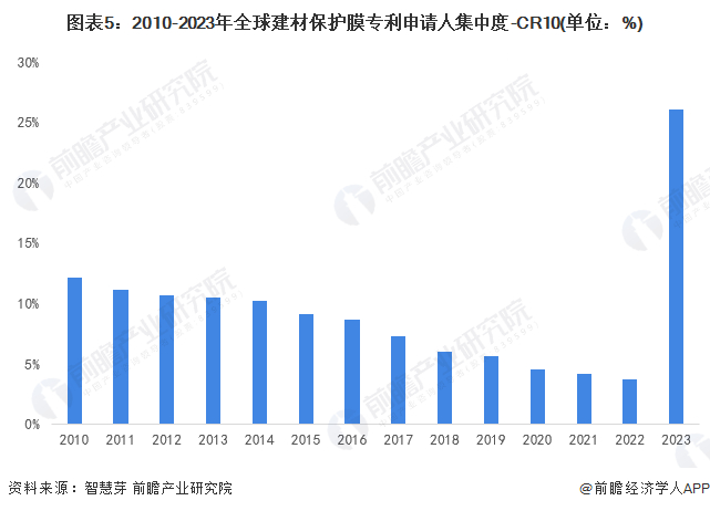 收藏!2023年全球建材保护膜行业技术竞争格局(附区域申请分布、申请人排名、专利申请集中度等)