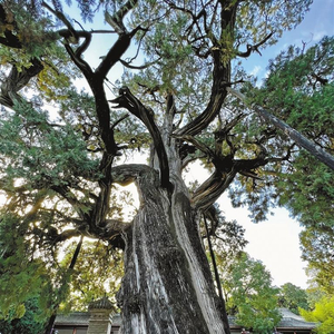 渭南市白水县史官镇仓颉庙院里,仓颉手植柏树枝像虬龙在空中盘绕,苍劲挺拔、冠盖蔽空,至今依然四季常青、枝繁叶茂,是仓颉文化的遗存和历史见证。5000多年来,它挺立在这里,在寒来暑往中迎日出、送晚霞,守日月、候星辰。