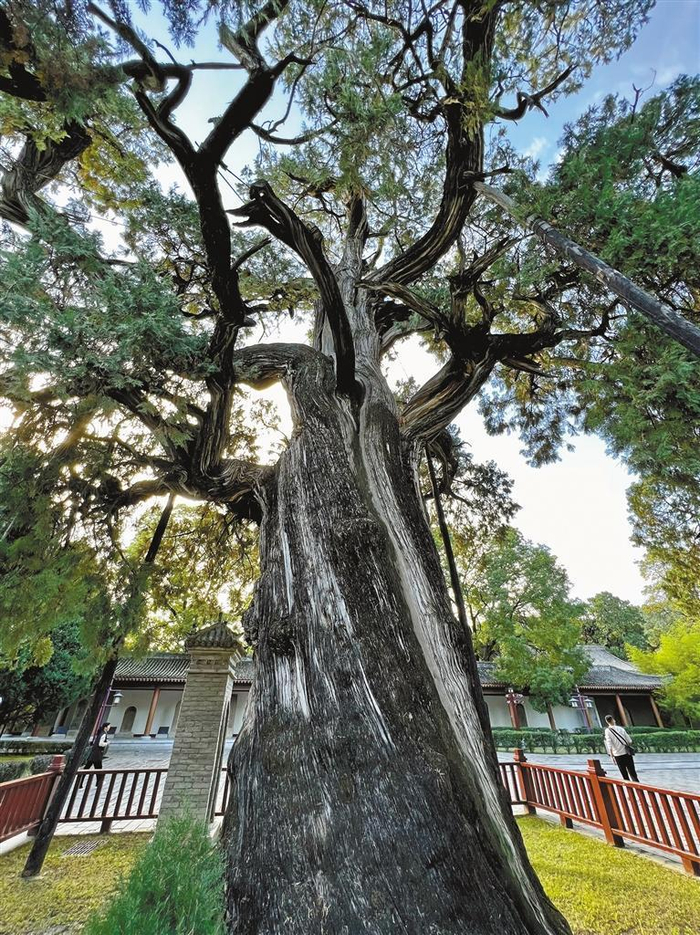 一百年过去了,它活着;五百年过去了,它活着;数千年过去了,它还活着。它的生命,见证了历史的演进,见证了王朝的更迭,见证了无数的春秋轮回和世事沧桑。这样的树活到现在,它还是一棵两棵简简单单的树吗?