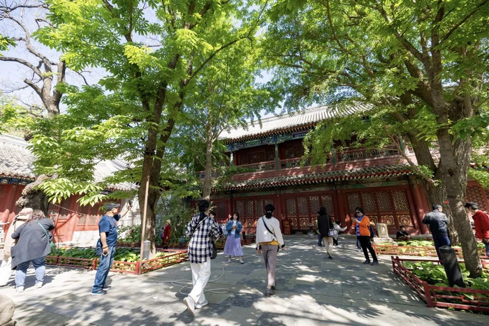 春日和煦,法源寺内游人闲适观赏