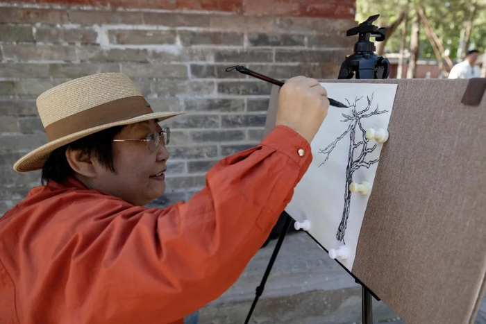 绘画爱好者写生记录寺内美丽图景