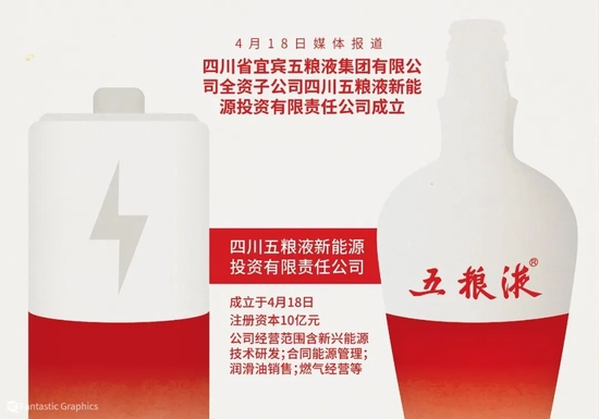 近日,五粮液集团砸10亿元投资新能源的消息不胫而走。4月18日,一家名为“四川五粮液新能源投资有限责任公司”(下称“五粮液新能源”)的企业成立。