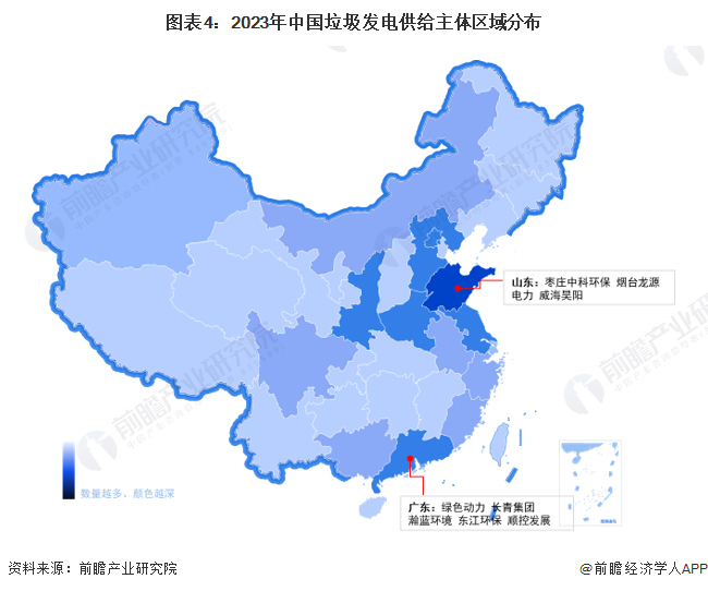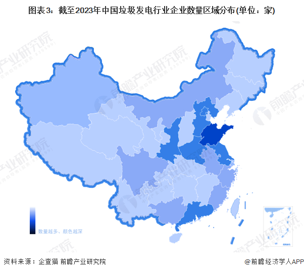 垃圾发电行业产业链区域热力地图:山东省为主要聚集地