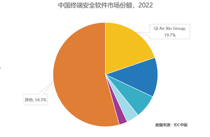《报告》显示,2022年全年,奇安信终端安全软件市场份额占比达到19.7%,从2018年至今连续五年排名第一。