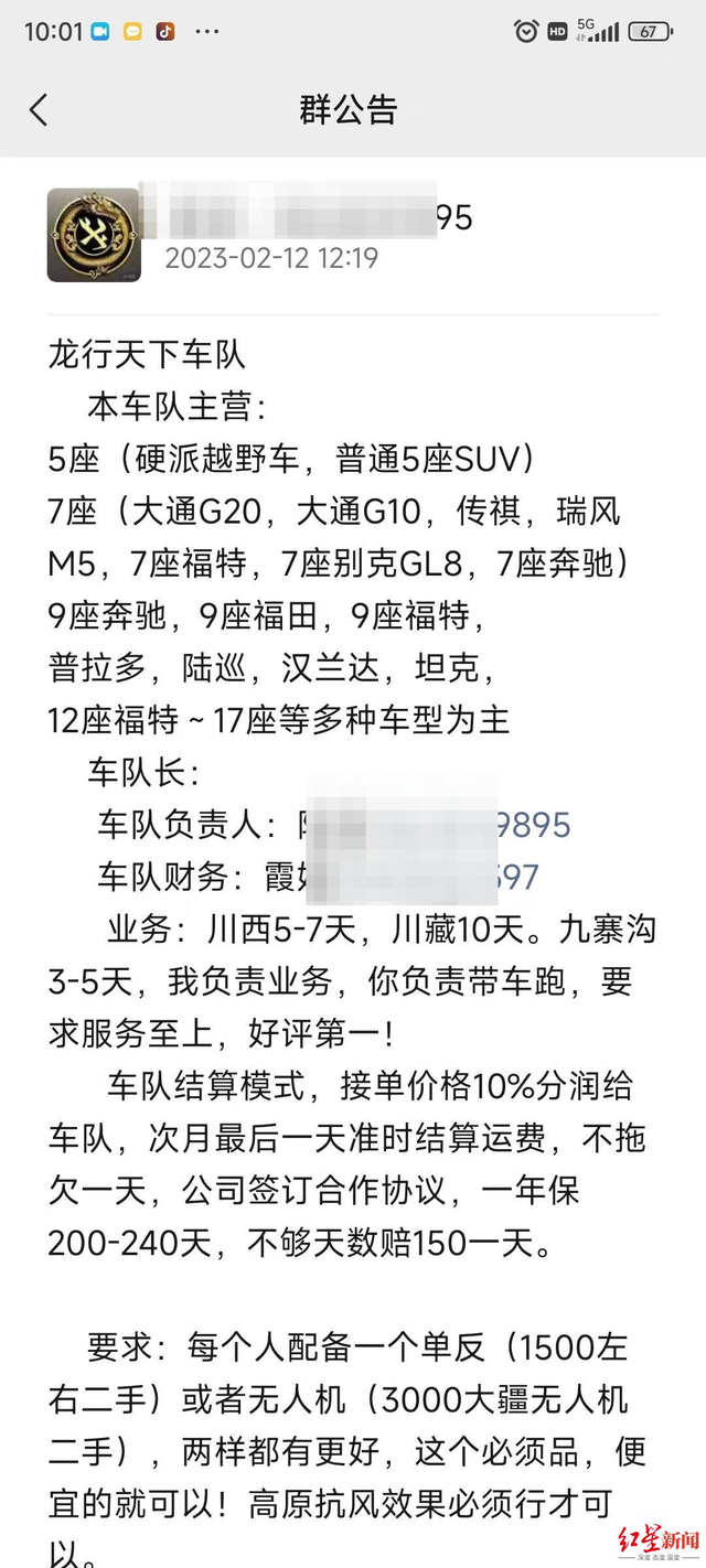 红星新闻记者了解到,今年年初,至少数十名车主在成都龙行天下汽车租赁有限公司(以下简称:龙行公司)的招募下,带着自己5座SUV或7座商务车从各地汇聚到成都,准备做旅游包车司机。但交了1.5万“加盟费”后,才发现不仅承诺的出车天数未达到,公司连经营资质也没有。