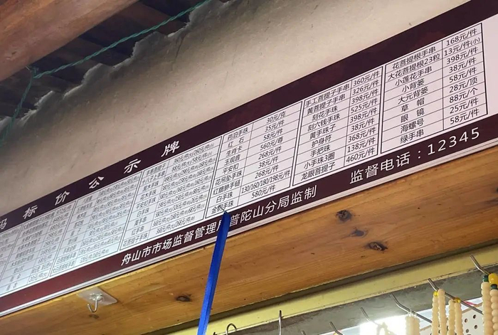 除了餐饮行业,普陀山1200余家民宿也已全部落实价格公示,300家商亭正在落实中。
