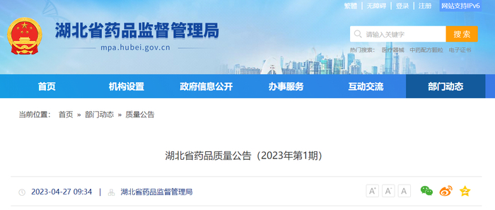 湖北省药品监督管理局发布药品质量公告(2023年第1期)