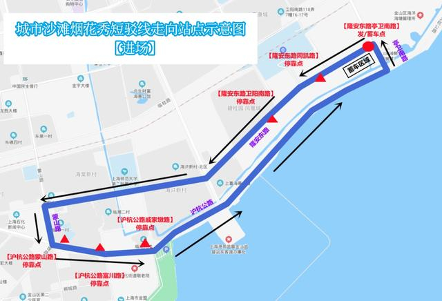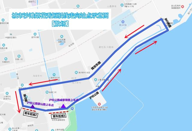 路线二:S19新卫高速——金山卫出口——新卫公路——金山大道——杭州湾大道——金山城市沙滩