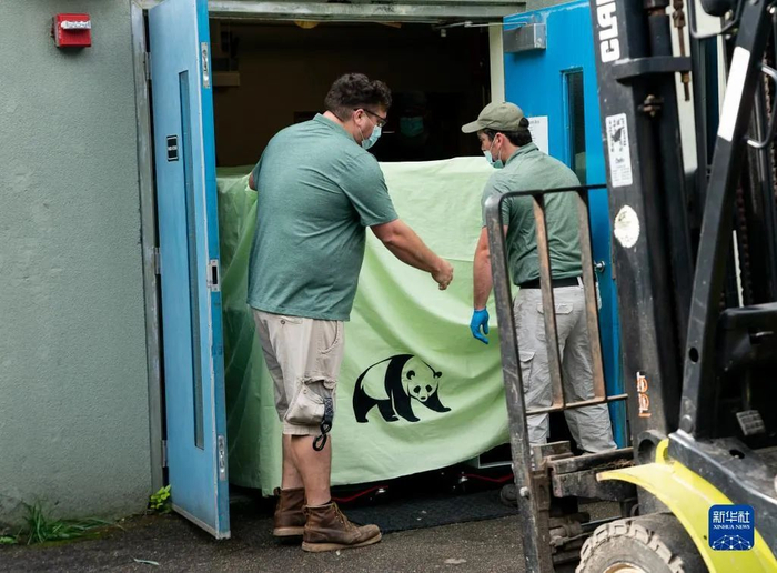 ·4月26日,工作人员在美国田纳西州孟菲斯动物园搬运装载大熊猫“丫丫”的箱笼。新华社记者 刘杰 摄