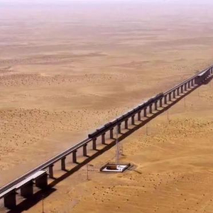 ▲世界首条环沙漠铁路全线贯通。