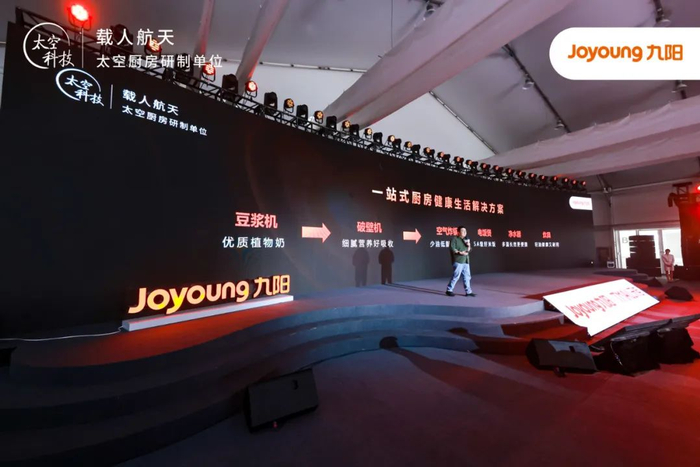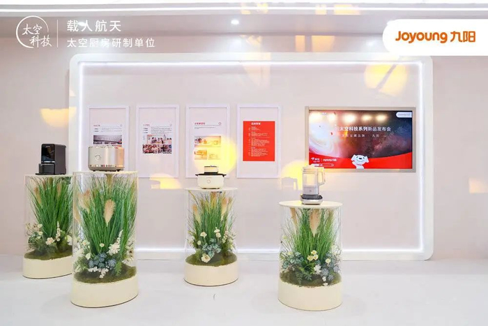 2013年,为解决航天员在太空的吃饭问题,载人航天相关部门向社会征集科研力量。经过层层选拔,九阳入选成为载人航天太空厨房研制单位,承担饮水设备、加热设备、太空豆浆等方面的研发工作,来保障航天员的健康饮水和一日三餐。2021年4月29日,九阳“太空厨房”随天和核心舱成功发射入驻中国空间站,为多批航天员提供健康饮食饮水服务。