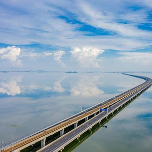 石臼湖特大桥是连接南京市溧水区和高淳区的跨湖通道,北起石臼湖北大堤,上跨石臼湖水道,南至石臼湖南大堤,全长12000多米。行于桥上,看湖水如镜、风光旖旎,石臼湖特大桥成为新“天空之镜”打卡地。