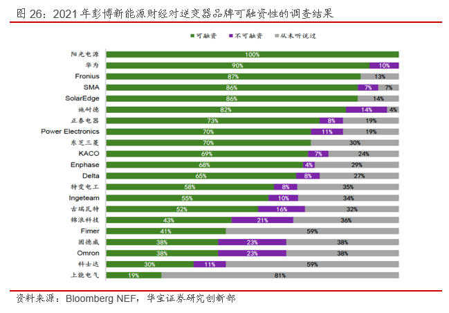 3)国内厂商在海外品牌认可度逐渐提升。排名较高的品牌意味着更易帮助项目开发商获得银行融资,利于绑定长期客户群体;另一方面说明该品牌逆变器在产品质量、运行表现、售后服务支持和长期可靠性方面表现突出,利于海外布局的拓展。